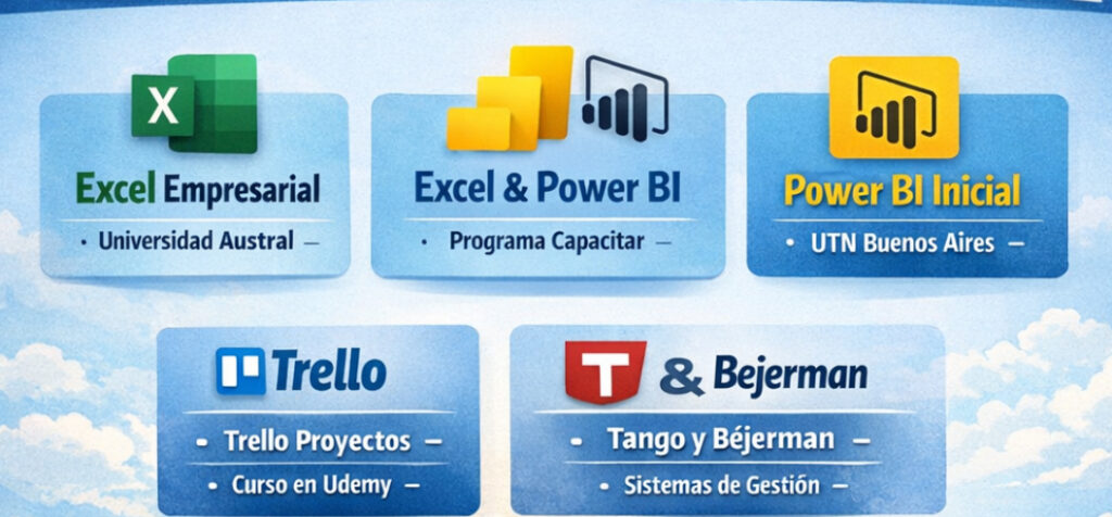 En el mercado laboral actual, un perfil administrativo competitivo necesita mucho más que experiencia: requiere manejo de datos, organización digital y conocimiento en sistemas de gestión. Dominar herramientas como Excel, Power BI, Trello, Tango o Bejerman marca la diferencia al momento de postularse.