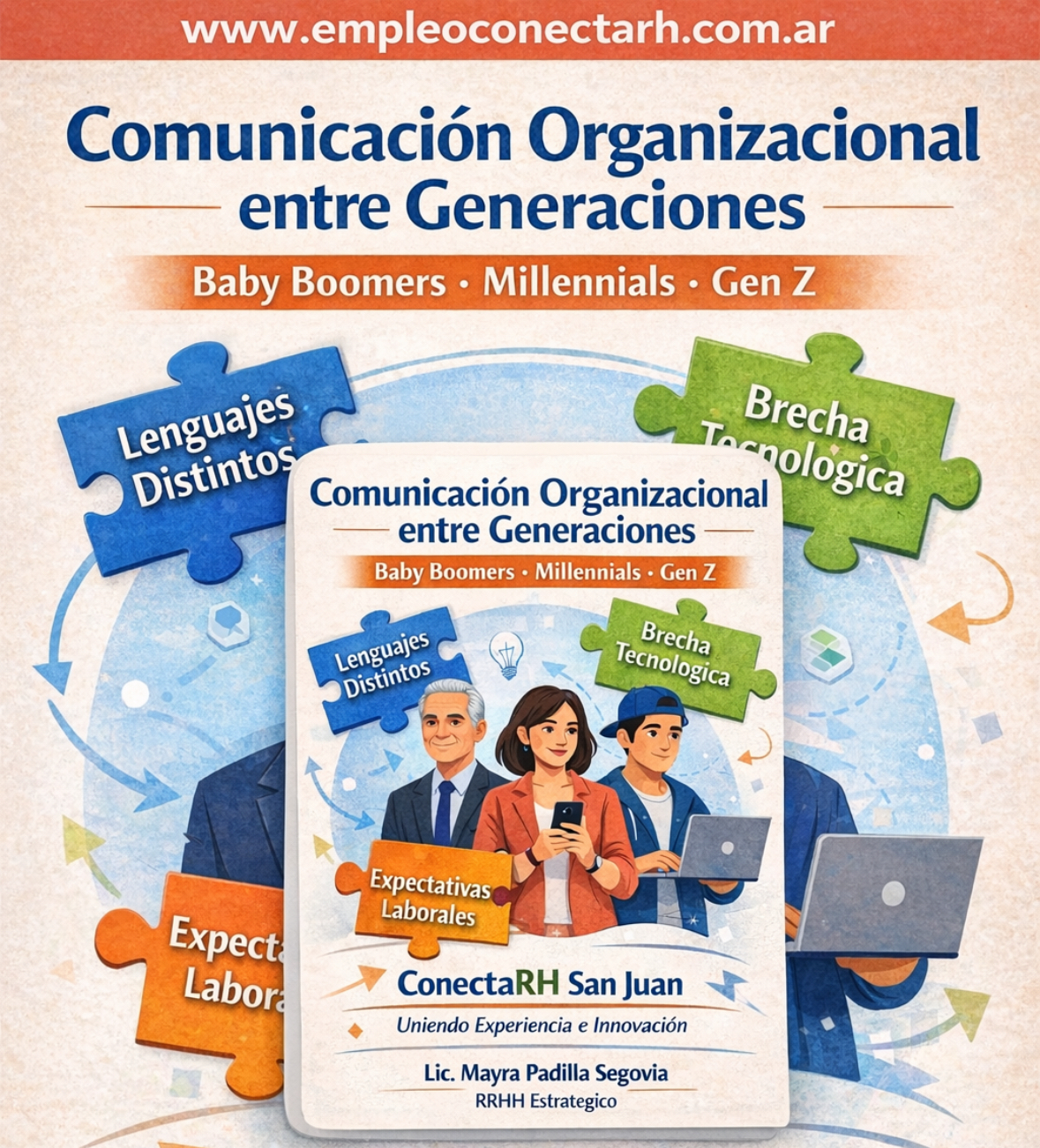 La comunicación organizacional entre generaciones no es una tendencia pasajera: es una competencia clave del liderazgo moderno. En ConectaRH, junto a la Lic. Mayra Padilla Segovia, promovemos culturas laborales donde la edad no divide, sino que potencia, donde la experiencia y la innovación conviven, y donde las personas son el verdadero motor del desarrollo sostenible.