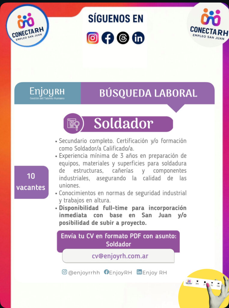 #empleosanjuan #sanjuanargentina #enviatucv #rrhhsanjuan #conectarh