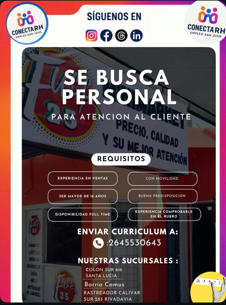 #empleosanjuan #sanjuanargentina #enviatucv #rrhhsanjuan #conectarh