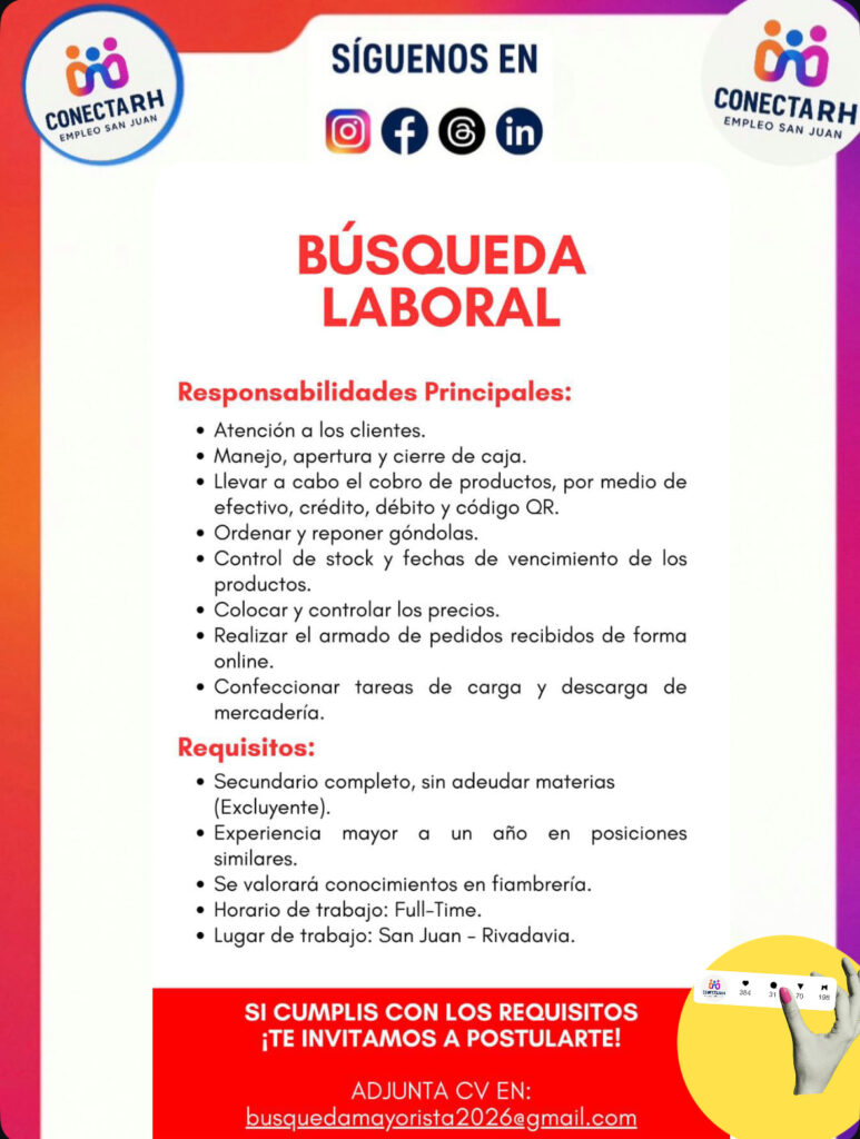 #empleosanjuan #sanjuanargentina #enviatucv #rrhhsanjuan #conectarh