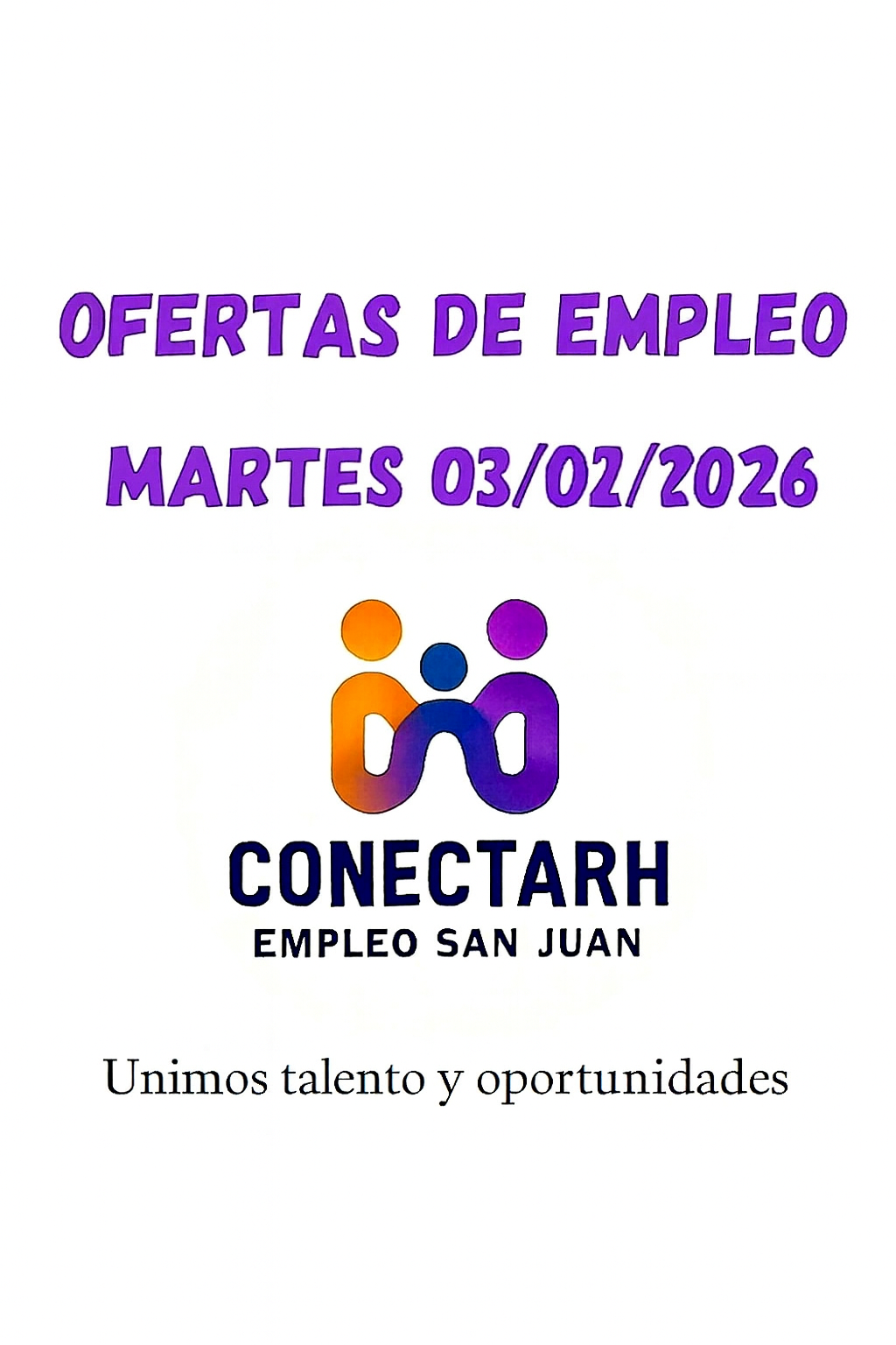 Vacantes laborales – 03/02/2026 🚨 Importante: En Conectarh difundimos búsquedas laborales de terceros.Toda la información necesaria sobre requisitos y forma de postulación está detallada en cada flyer. Éxitos 💪🏻🍀 #empleosanjuan #sanjuanargentina #enviatucv #rrhhsanjuan #conectarh