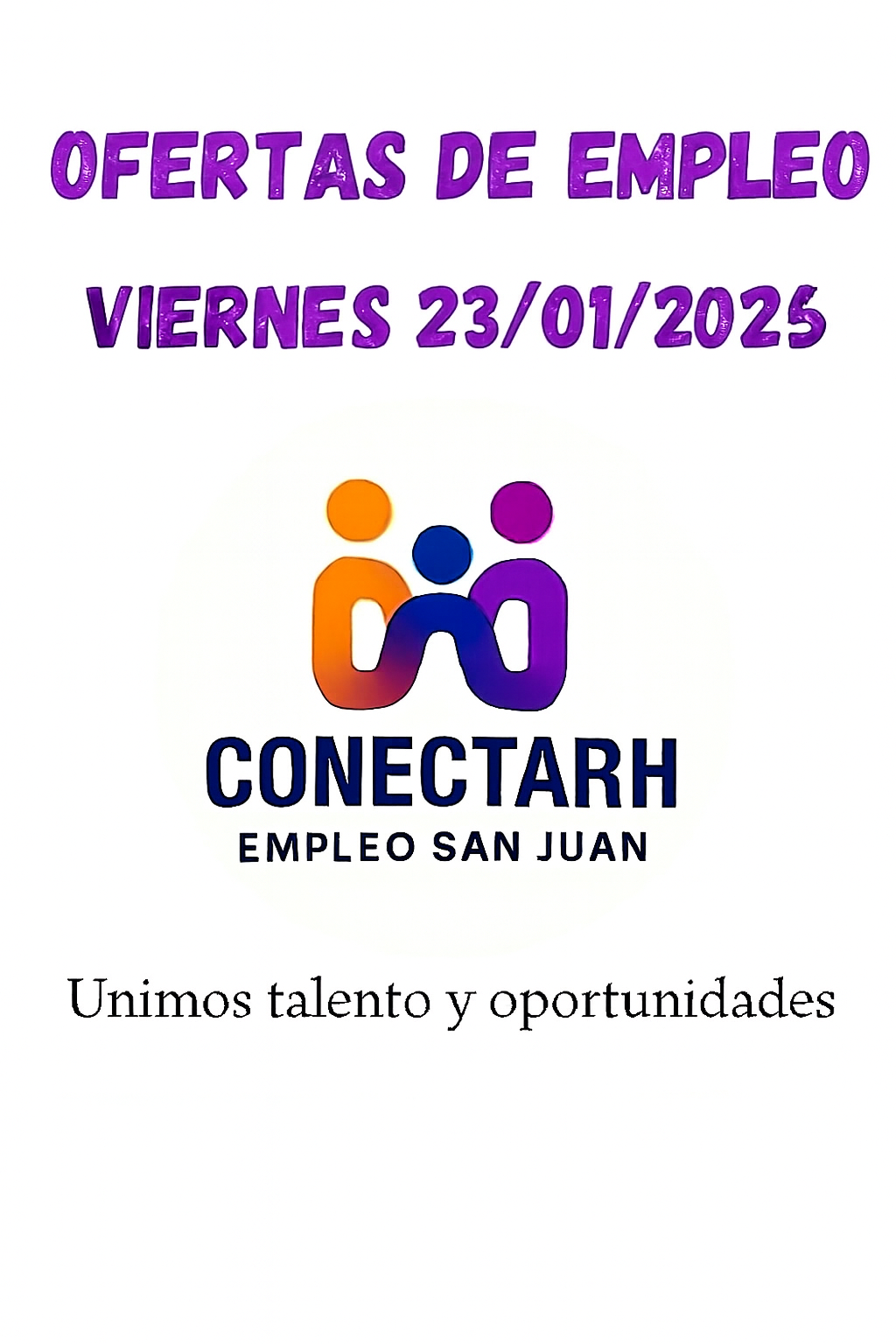 Vacantes laborales – 23/01/2026 🚨 Importante: En Conectarh difundimos búsquedas laborales de terceros.Toda la información necesaria sobre requisitos y forma de postulación está detallada en cada flyer. Éxitos 💪🏻🍀 #empleosanjuan #sanjuanargentina #enviatucv #rrhhsanjuan #conectarh