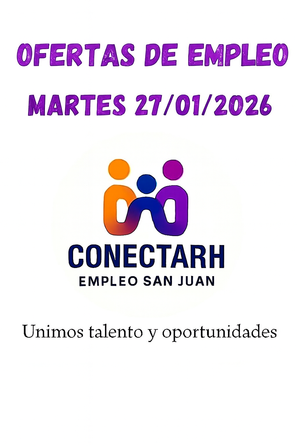 Vacantes laborales – 27/01/2026 🚨 Importante: En Conectarh difundimos búsquedas laborales de terceros.Toda la información necesaria sobre requisitos y forma de postulación está detallada en cada flyer. Éxitos 💪🏻🍀 #empleosanjuan #sanjuanargentina #enviatucv #rrhhsanjuan #conectarh