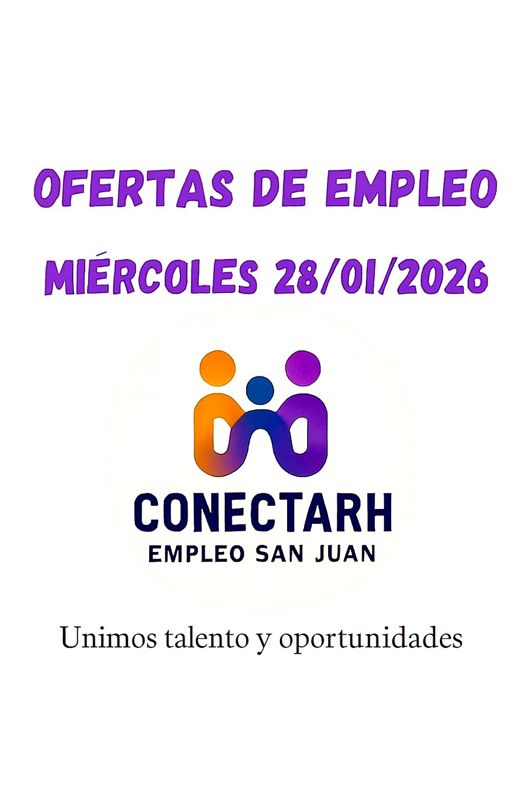 Vacantes laborales – 28/01/2026 🚨 Importante: En Conectarh difundimos búsquedas laborales de terceros.Toda la información necesaria sobre requisitos y forma de postulación está detallada en cada flyer. Éxitos 💪🏻🍀 #empleosanjuan #sanjuanargentina #enviatucv #rrhhsanjuan #conectarh