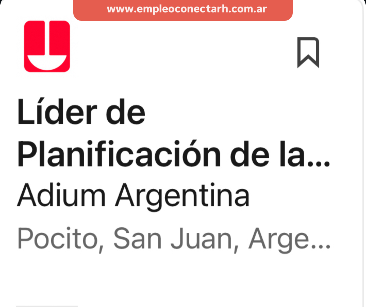Ubicación: Pocito, San JuanEmpresa: Adium Argentina Desde la mirada de ConectaRH y la Lic. Mayra Padilla Segovia, celebramos este tipo de búsquedas que fortalecen la industria local con empleos de calidad, liderazgo técnico y proyección profesional. Apostar por planificación, procesos y talento es apostar por desarrollo sostenible y crecimiento genuino en San Juan. Adium Argentina, referente en innovación, calidad y excelencia operativa, abre la convocatoria para incorporar un/a Líder de Planificación de la Producción, un rol estratégico que conecta la demanda comercial con las capacidades reales de planta, garantizando eficiencia, previsibilidad y resultados sostenibles. 🧩 Principales responsabilidades 🎯 Requisitos del perfil 🌱 Beneficios destacados 🤝 Conclusión de ConectaRH Desde ConectaRH, impulsamos búsquedas que promueven el empleo formal, el crecimiento profesional y la ética laboral. Creemos que los procesos bien planificados, el liderazgo humano y el trabajo colaborativo son la base de organizaciones sólidas, competitivas y sostenibles en el tiempo. Este tipo de oportunidades reflejan cómo la industria sanjuanina sigue apostando por talento local, innovación y excelencia operativa. 📌 Postulación disponible en plataformas de empleo.🔔 Activá alertas para recibir búsquedas similares en Pocito, San Juan. Link a la Postulación: https://www.linkedin.com/jobs/view/4366728686