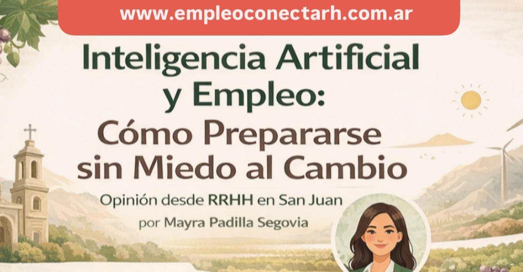 Opinión desde RRHH en San Juan Por Mayra Padilla Segovia – ConectaRH La inteligencia artificial ya es parte del trabajo cotidiano La inteligencia artificial dejó de ser una promesa futura para convertirse en una herramienta concreta en el día a día laboral. Desde procesos de selección hasta análisis de datos, la IA está redefiniendo la forma en que trabajamos. En San Juan, este cambio genera entusiasmo, pero también incertidumbre. La pregunta más frecuente es clara:¿La inteligencia artificial viene a reemplazarnos o a potenciarnos? IA y empleo: una relación más humana de lo que parece La IA no reemplaza habilidades humanas clave La tecnología puede automatizar tareas, pero no puede reemplazar: Por eso, los perfiles más valorados son aquellos que saben convivir con la tecnología, no competir contra ella. Cómo impacta la IA en los procesos de selección Reclutamiento más ágil y estratégico En RRHH, la IA se utiliza para: Esto implica que los candidatos deben adaptar su CV y perfil digital para ser comprendidos tanto por personas como por sistemas automatizados (ATS). Qué habilidades serán clave en la era de la IA Habilidades humanas + habilidades digitales El perfil más buscado combina: No se trata de ser programador, sino de entender cómo la tecnología atraviesa nuestro rol. Prepararse para el futuro laboral desde San Juan La clave no es resistirse al cambio, sino anticiparse: Desde ConectaRH acompañamos a personas y organizaciones en este proceso de adaptación consciente y estratégica. Conclusión La inteligencia artificial no elimina el empleo, lo transforma. Y en esa transformación, quienes se preparan con tiempo tienen una ventaja clara. El futuro laboral no es tecnológico o humano. Es la combinación inteligente de ambos. 📲 WhatsApp: 2645 76-6112🌐 Web: www.empleoconectarh.com.ar📸 Instagram: @conectarh.empleo.sj