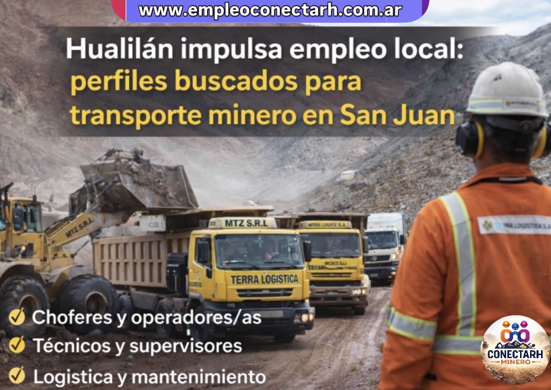 El Proyecto Hualilán avanza en una nueva etapa operativa con la adjudicación del servicio de transporte del mineral a tres empresas sanjuaninas: MTZ S.R.L., Terra Logística S.A. y Mi Viejo S.R.L.. Esta decisión no solo fortalece la cadena de valor local, sino que también abre nuevas oportunidades laborales directas e indirectas en logística minera, transporte pesado y servicios operativos. Desde ConectaRH observamos que este tipo de contratos estratégicos generan impacto inmediato en el empleo regional, especialmente en perfiles técnicos, operativos y de gestión vinculados a la industria minera. 👷♂️ ¿Qué perfiles laborales necesitarán estas empresas? Según el tipo de operación prevista —traslado de hasta 720.000 toneladas de mineral durante los próximos tres años—, se esperan incorporaciones en áreas clave como: Estas posiciones requieren experiencia en entornos industriales, cumplimiento estricto de normas de seguridad y capacidad de trabajo en contextos de alta exigencia operativa. 📈 Empleo local y fortalecimiento productivo Según informó la operadora Golden Mining, la operatoria generará al menos 29 puestos de trabajo directos inmediatos, además de empleo indirecto en talleres, estaciones de servicio, proveedores logísticos y servicios asociados. Para ConectaRH, este modelo de contratación local refleja una tendencia positiva: la minería no solo impulsa empleo directo en proyectos, sino que dinamiza economías regionales completas, especialmente en sectores como logística, transporte, mantenimiento y servicios técnicos. 🎯 Oportunidades para quienes buscan trabajo Este tipo de servicios mineros consolida a San Juan como uno de los principales polos de empleo en minería y logística industrial. Para quienes buscan insertarse en este sector, será clave: ✔️ Contar con licencias habilitantes y experiencia en transporte pesado✔️ Tener formación en seguridad, conducción en alta montaña y entornos industriales✔️ Presentar un CV claro, técnico y orientado al puesto✔️ Postularse en empresas proveedoras locales además de operadoras mineras 💬 Conclusión desde la mirada de ConectaRH | Lic. Mayra Padilla Segovia “Cada contrato de servicios mineros es una oportunidad concreta de empleo regional. Hoy, logística, transporte y mantenimiento se consolidan como puertas de entrada estratégicas al mundo minero, especialmente para perfiles técnicos y operativos con formación en seguridad y trabajo en campo.”